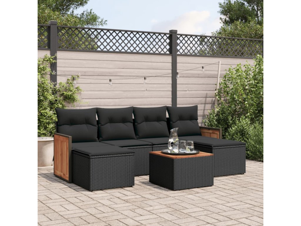 7dílná zahradní sedací souprava s poduškami černá polyratan 3260305