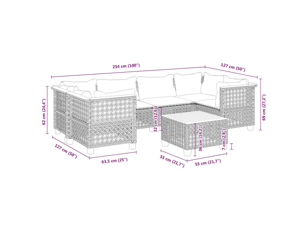 Tato zahradní sedací souprava je dokonalým doplňkem vaší zahrady, terasy nebo dvorku a poskytne vám pohodlné a příjemné místo, kde si můžete povídat s rodinou a přáteli nebo jen tak odpočívat a užívat si pobyt venku.
