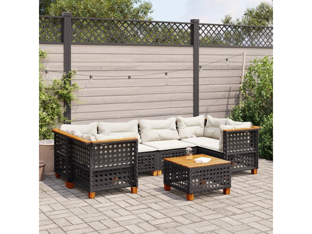 7dílná zahradní sedací souprava s poduškami černá polyratan 3261746