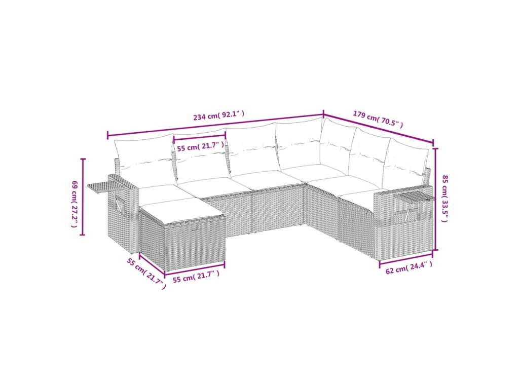 Tato zahradní sedací souprava je dokonalým doplňkem vaší zahrady, terasy nebo dvorku a poskytne vám pohodlné a příjemné místo, kde si můžete povídat s rodinou a přáteli nebo jen tak odpočívat a užívat si pobyt venku.