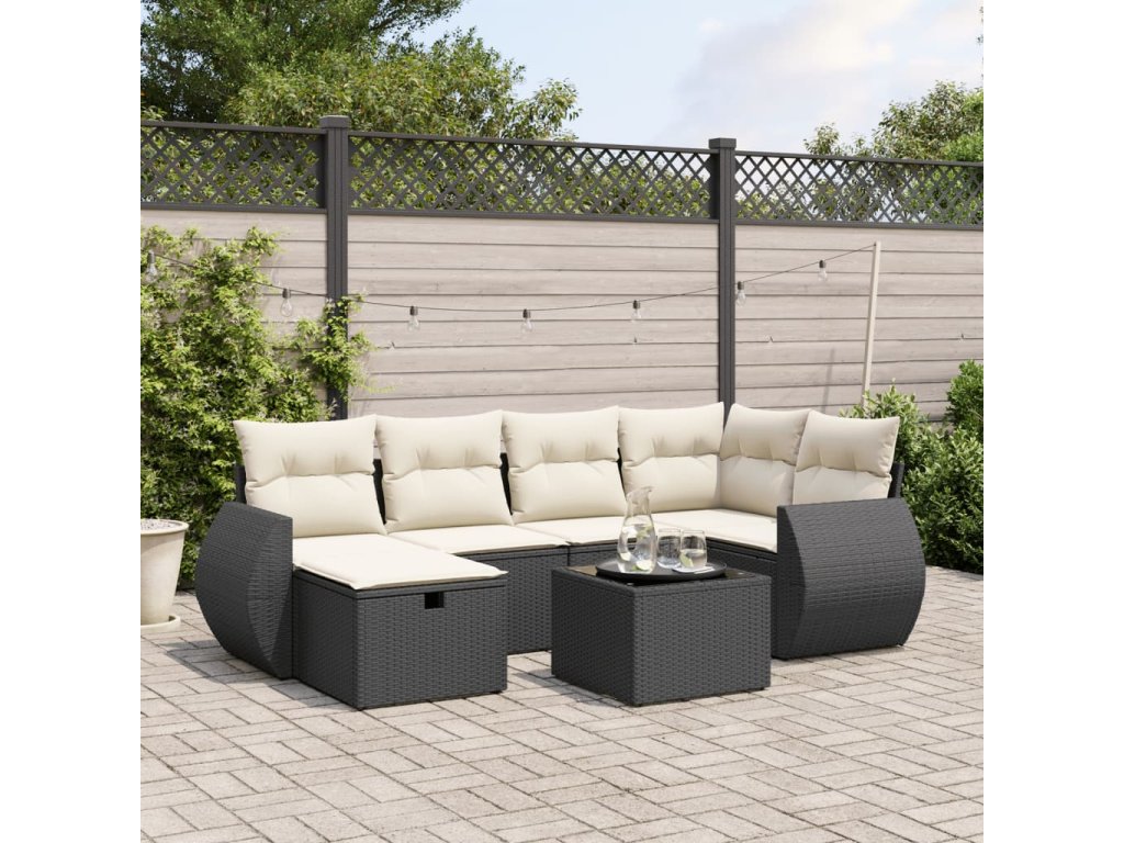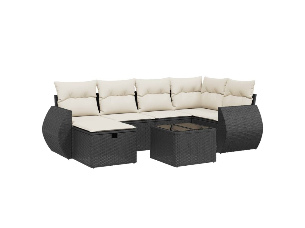 7dílná zahradní sedací souprava s poduškami černá polyratan 3264112