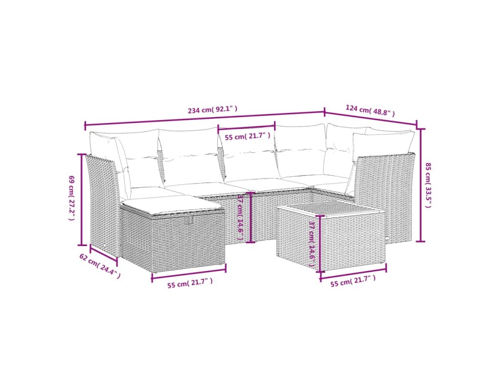Tato zahradní sedací souprava je dokonalým doplňkem vaší zahrady, terasy nebo dvorku a poskytne vám pohodlné a příjemné místo, kde si můžete povídat s rodinou a přáteli nebo jen tak odpočívat a užívat si pobyt venku.