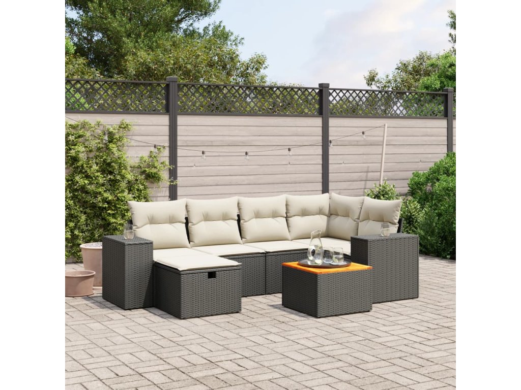 7dílná zahradní sedací souprava s poduškami černá polyratan 3265172