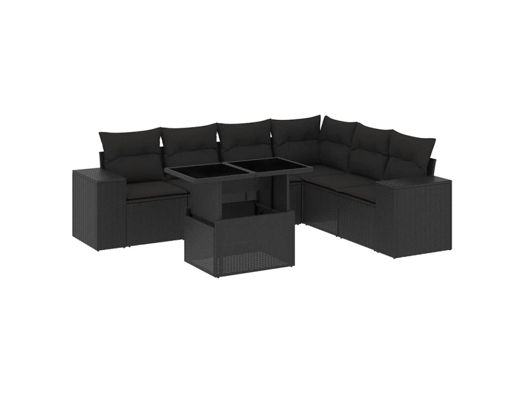 7dílná zahradní sedací souprava s poduškami černá polyratan 3269185