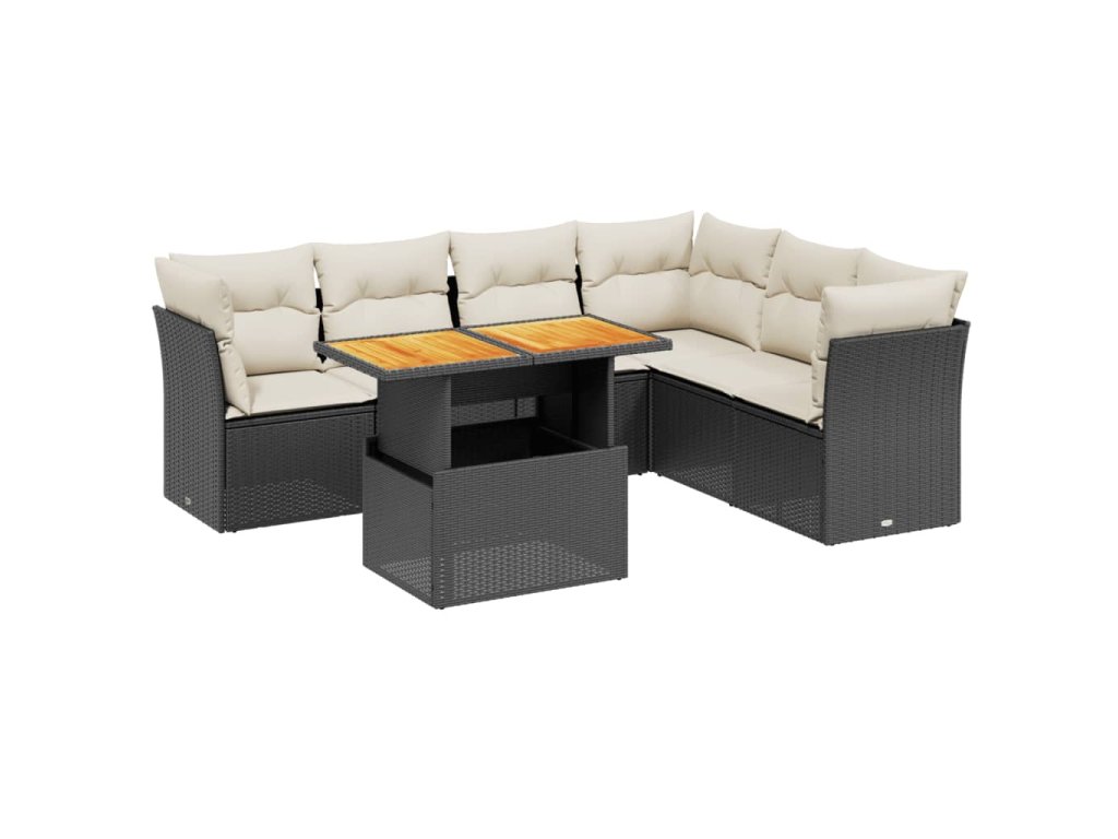 7dílná zahradní sedací souprava s poduškami černá polyratan 3270846