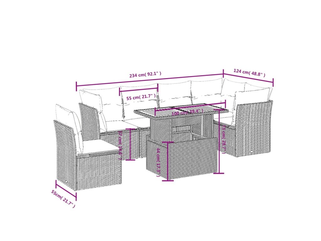 Tato zahradní sedací souprava je dokonalým doplňkem vaší zahrady, terasy nebo dvorku a poskytne vám pohodlné a příjemné místo, kde si můžete povídat s rodinou a přáteli nebo jen tak odpočívat a užívat si pobyt venku.