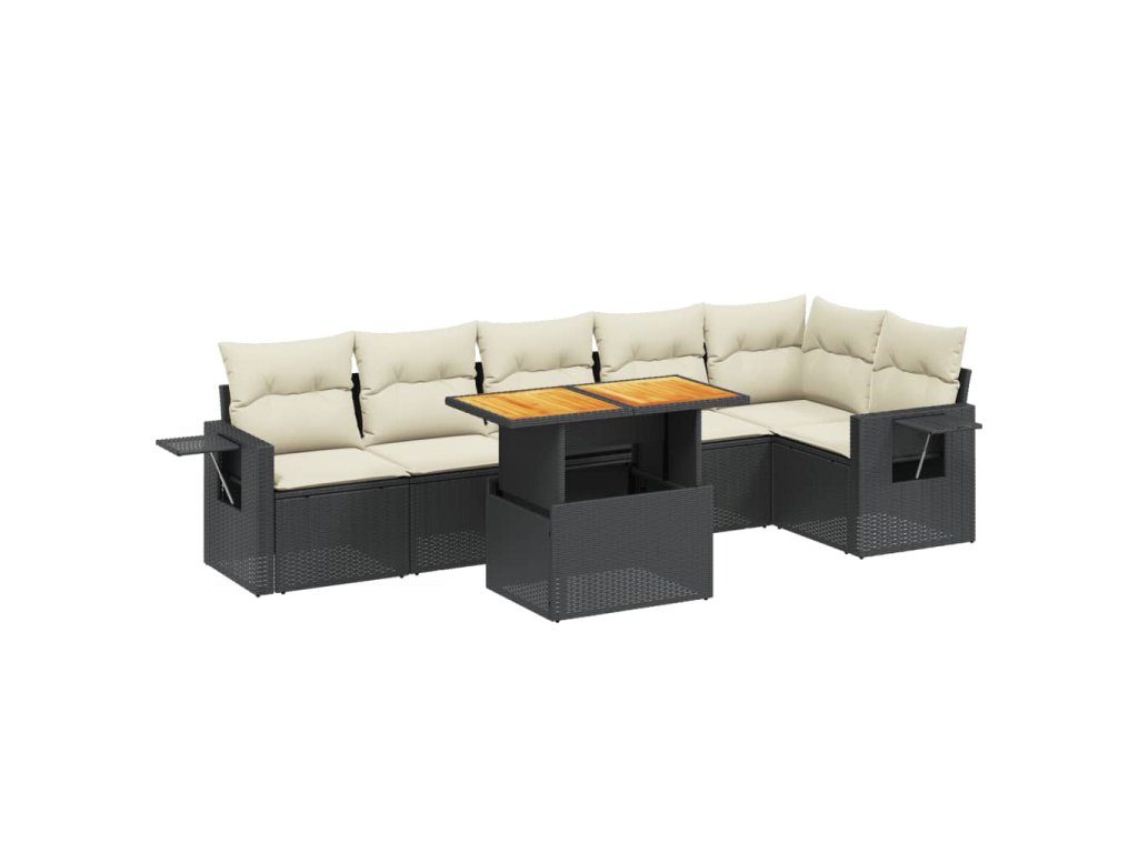 7dílná zahradní sedací souprava s poduškami černá polyratan 3271763