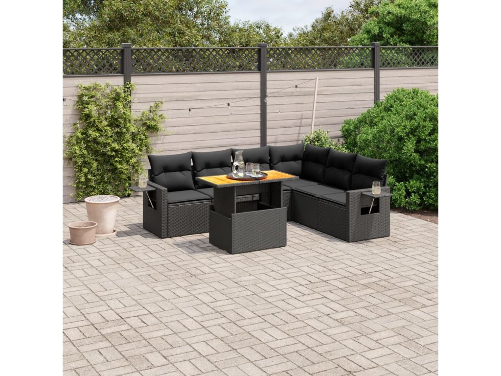 7dílná zahradní sedací souprava s poduškami černá polyratan 3271769
