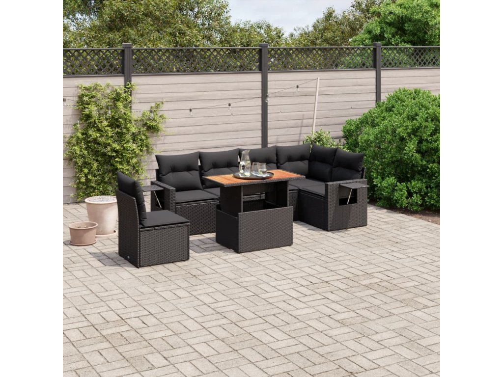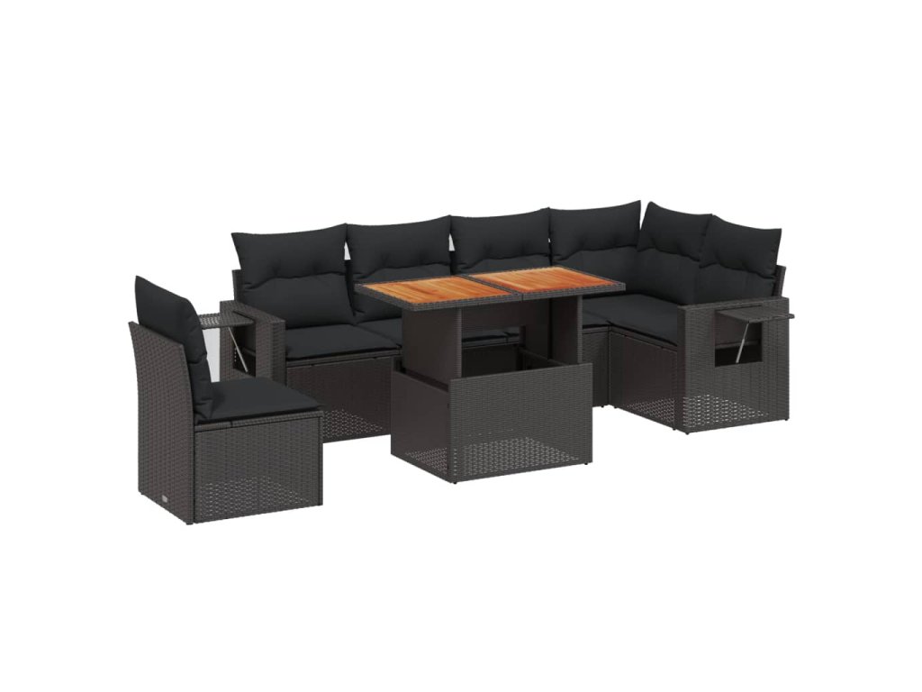 7dílná zahradní sedací souprava s poduškami černá polyratan 3271776
