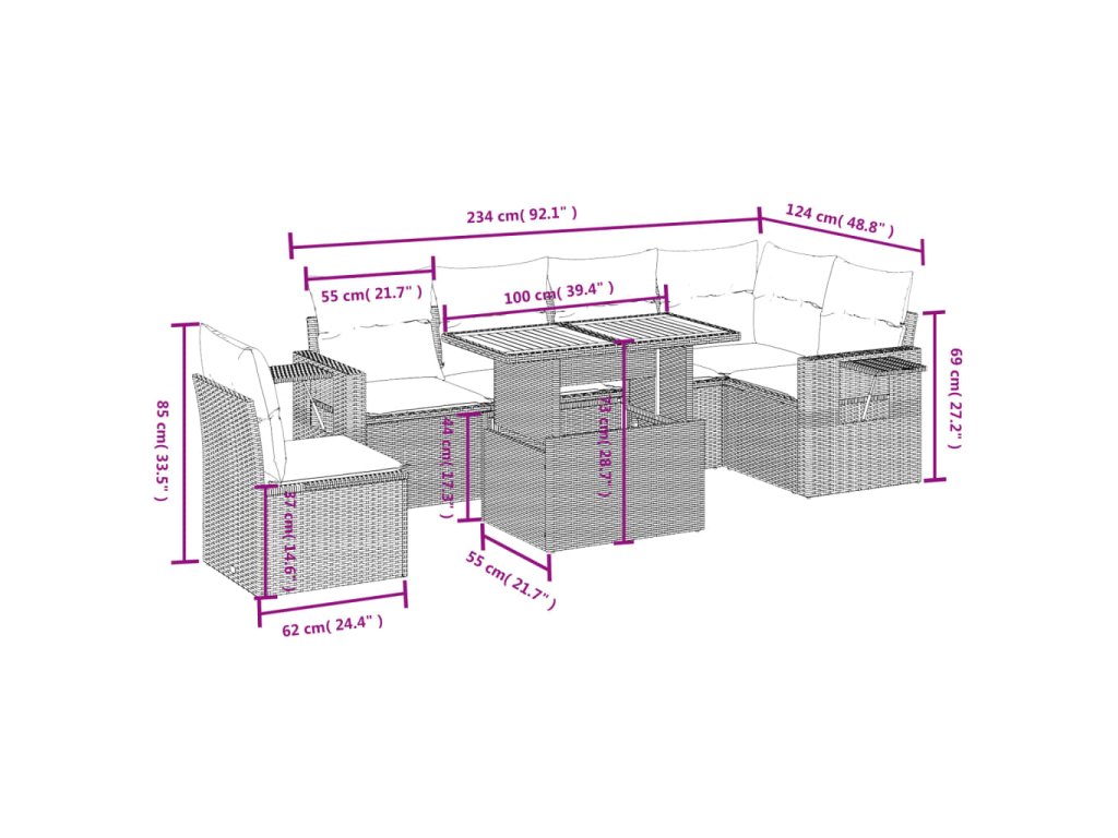 Tato zahradní sedací souprava je dokonalým doplňkem vaší zahrady, terasy nebo dvorku a poskytne vám pohodlné a příjemné místo, kde si můžete povídat s rodinou a přáteli nebo jen tak odpočívat a užívat si pobyt venku.