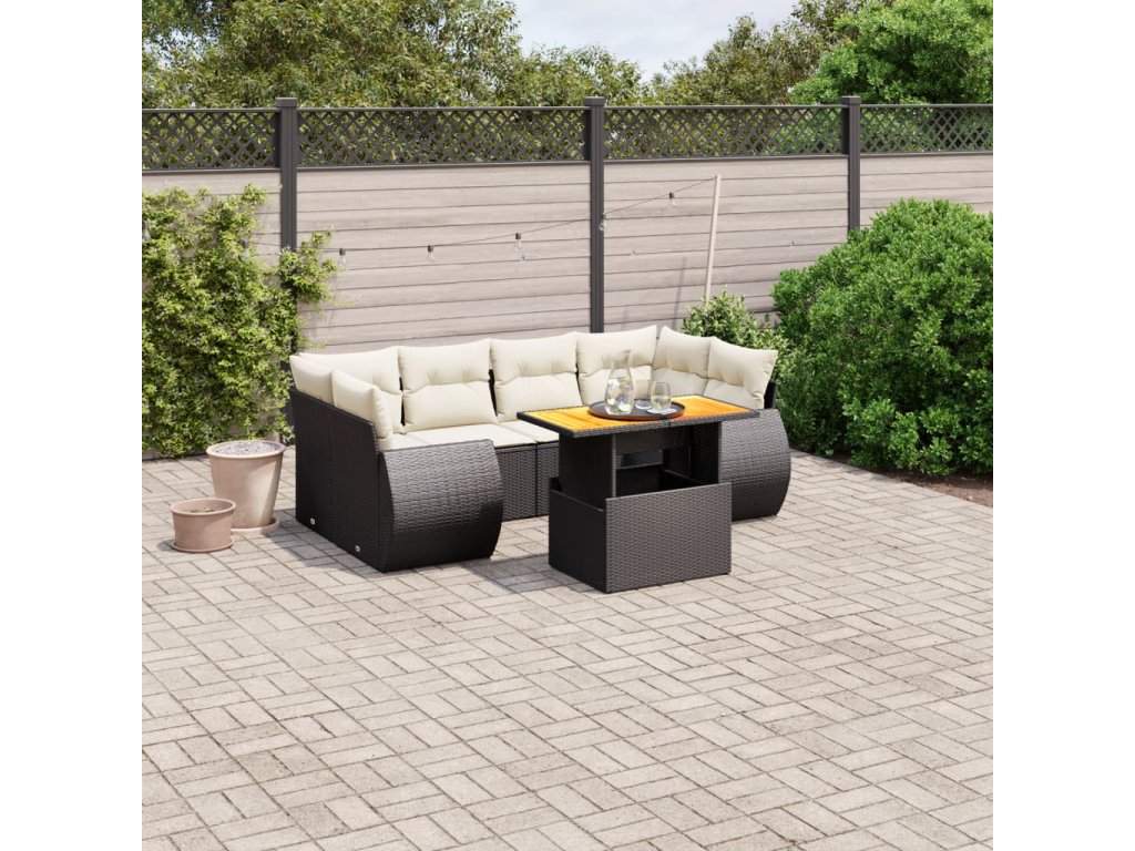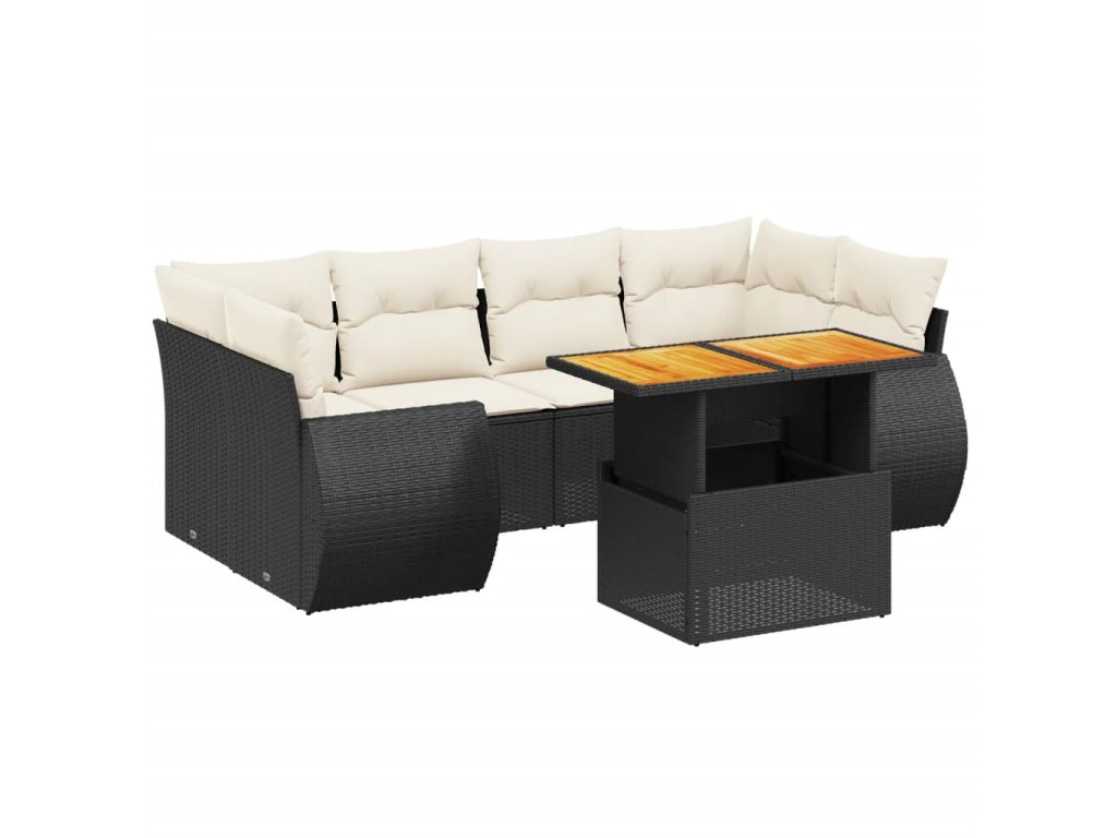 7dílná zahradní sedací souprava s poduškami černá polyratan 3272092