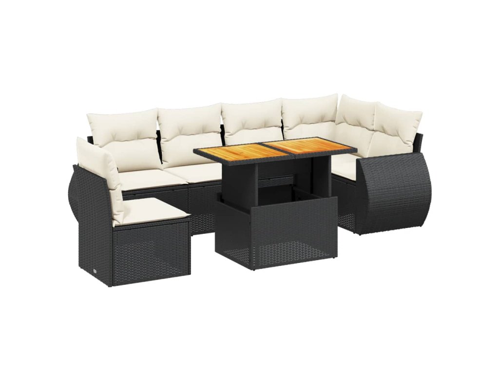 7dílná zahradní sedací souprava s poduškami černá polyratan 3272218