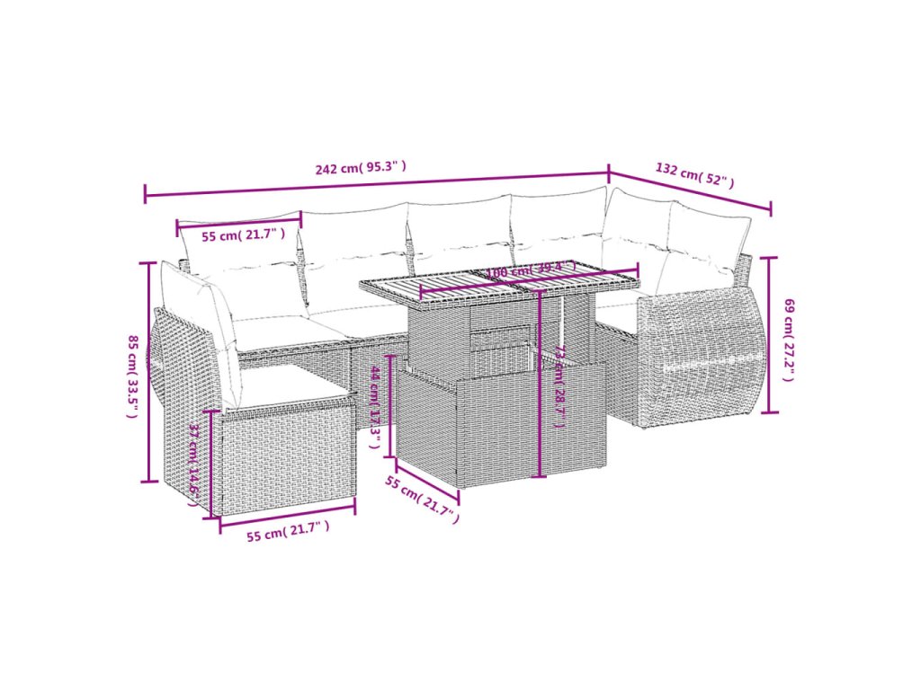 Tato zahradní sedací souprava je dokonalým doplňkem vaší zahrady, terasy nebo dvorku a poskytne vám pohodlné a příjemné místo, kde si můžete povídat s rodinou a přáteli nebo jen tak odpočívat a užívat si pobyt venku.