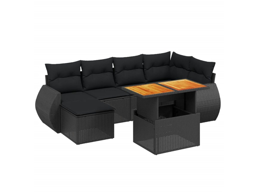 7dílná zahradní sedací souprava s poduškami černá polyratan 3272294
