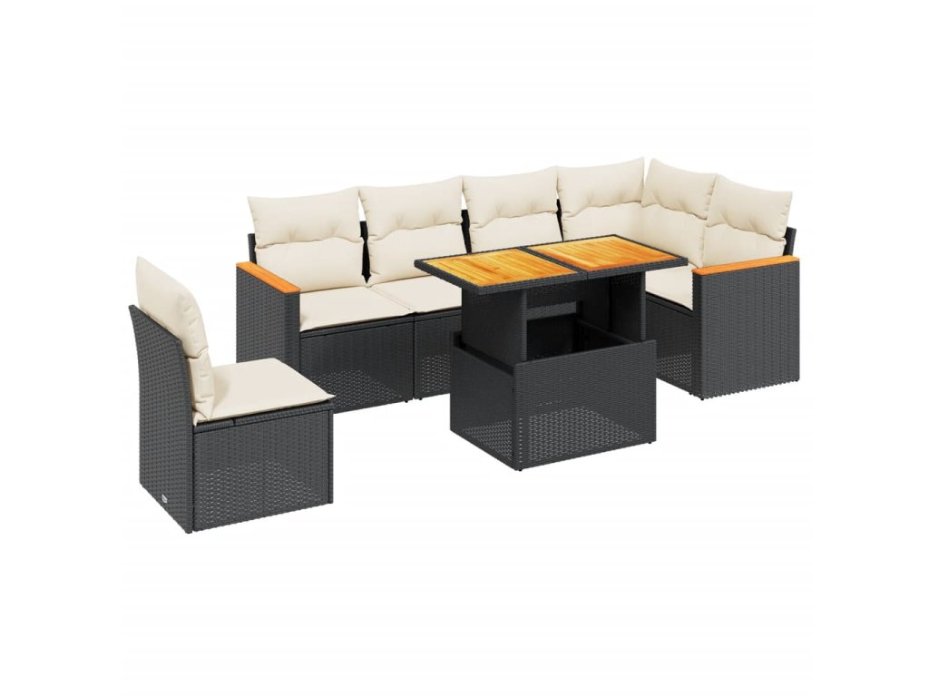 7dílná zahradní sedací souprava s poduškami černá polyratan 3273100
