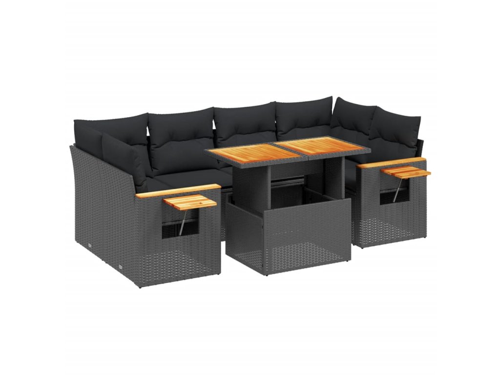 7dílná zahradní sedací souprava s poduškami černá polyratan 3273414