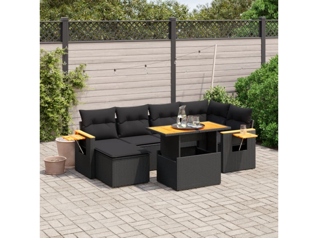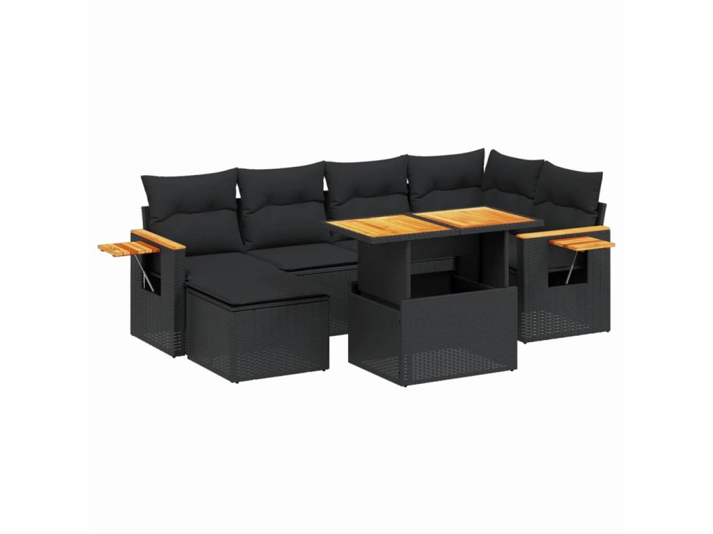 7dílná zahradní sedací souprava s poduškami černá polyratan 3273617