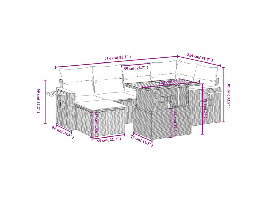Tato zahradní sedací souprava je dokonalým doplňkem vaší zahrady, terasy nebo dvorku a poskytne vám pohodlné a příjemné místo, kde si můžete povídat s rodinou a přáteli nebo jen tak odpočívat a užívat si pobyt venku.