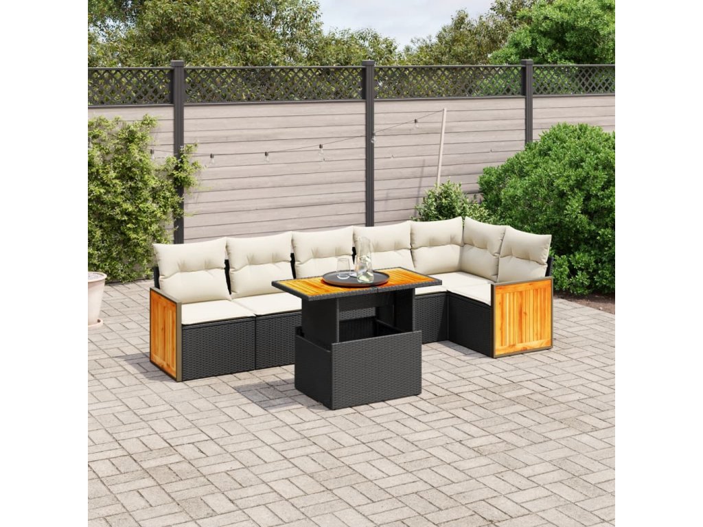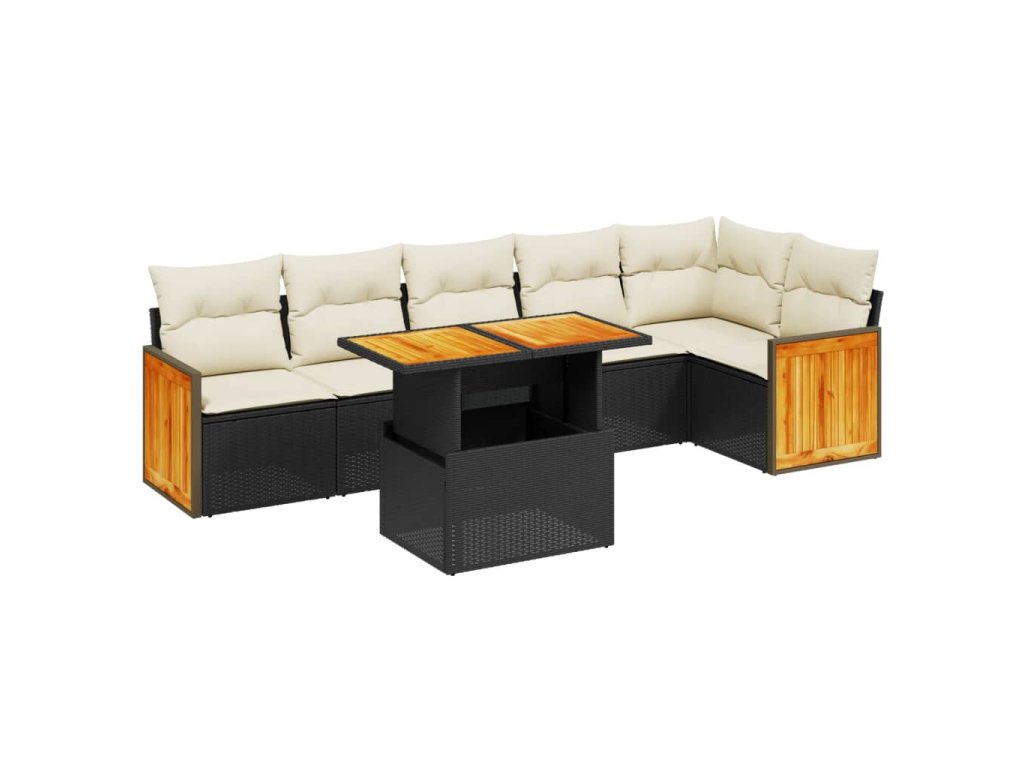 7dílná zahradní sedací souprava s poduškami černá polyratan 3273968