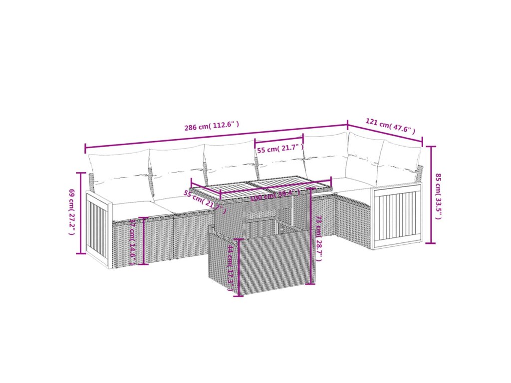 Tato zahradní sedací souprava je dokonalým doplňkem vaší zahrady, terasy nebo dvorku a poskytne vám pohodlné a příjemné místo, kde si můžete povídat s rodinou a přáteli nebo jen tak odpočívat a užívat si pobyt venku.