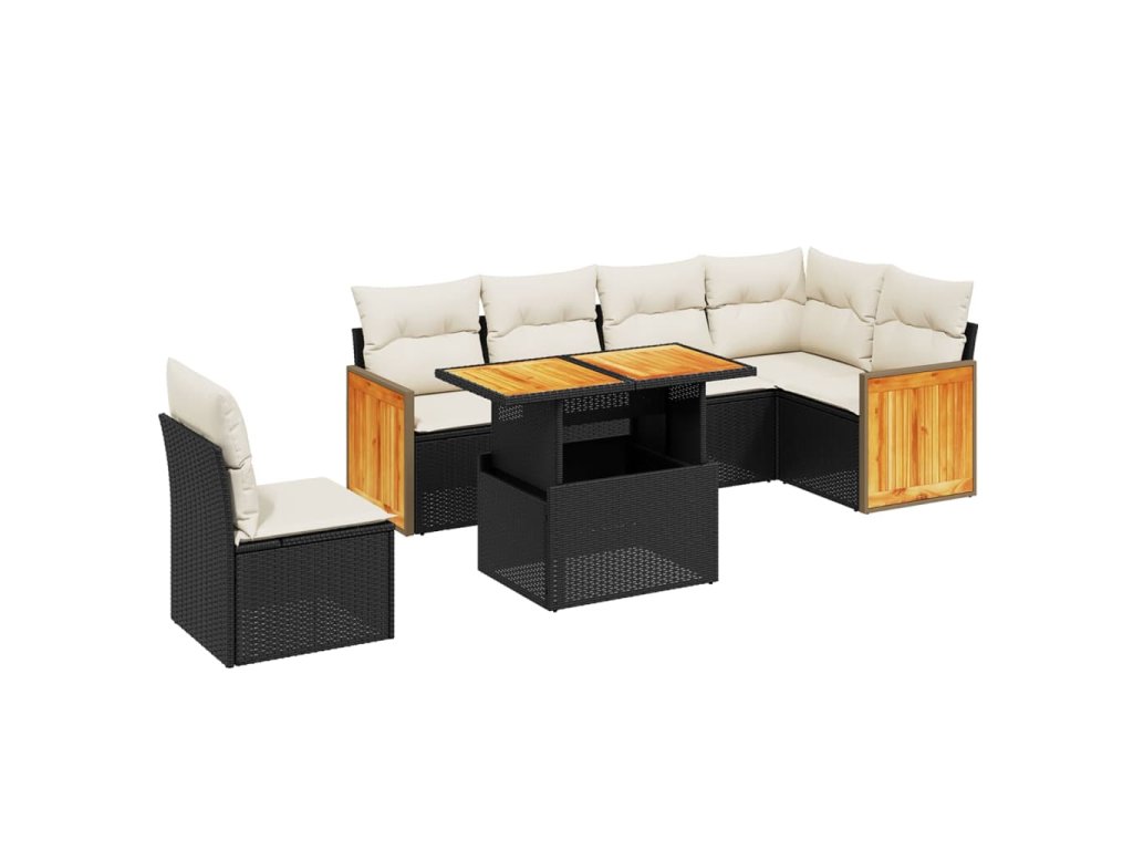 7dílná zahradní sedací souprava s poduškami černá polyratan 3273982