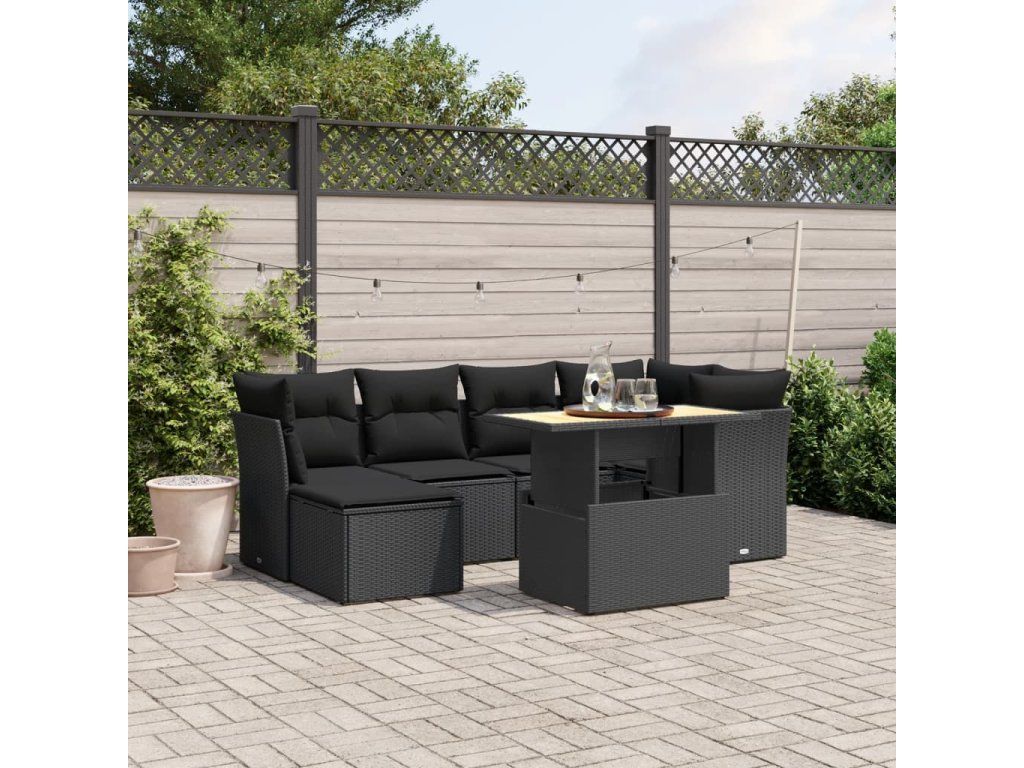 7dílná zahradní sedací souprava s poduškami černá polyratan 3275477