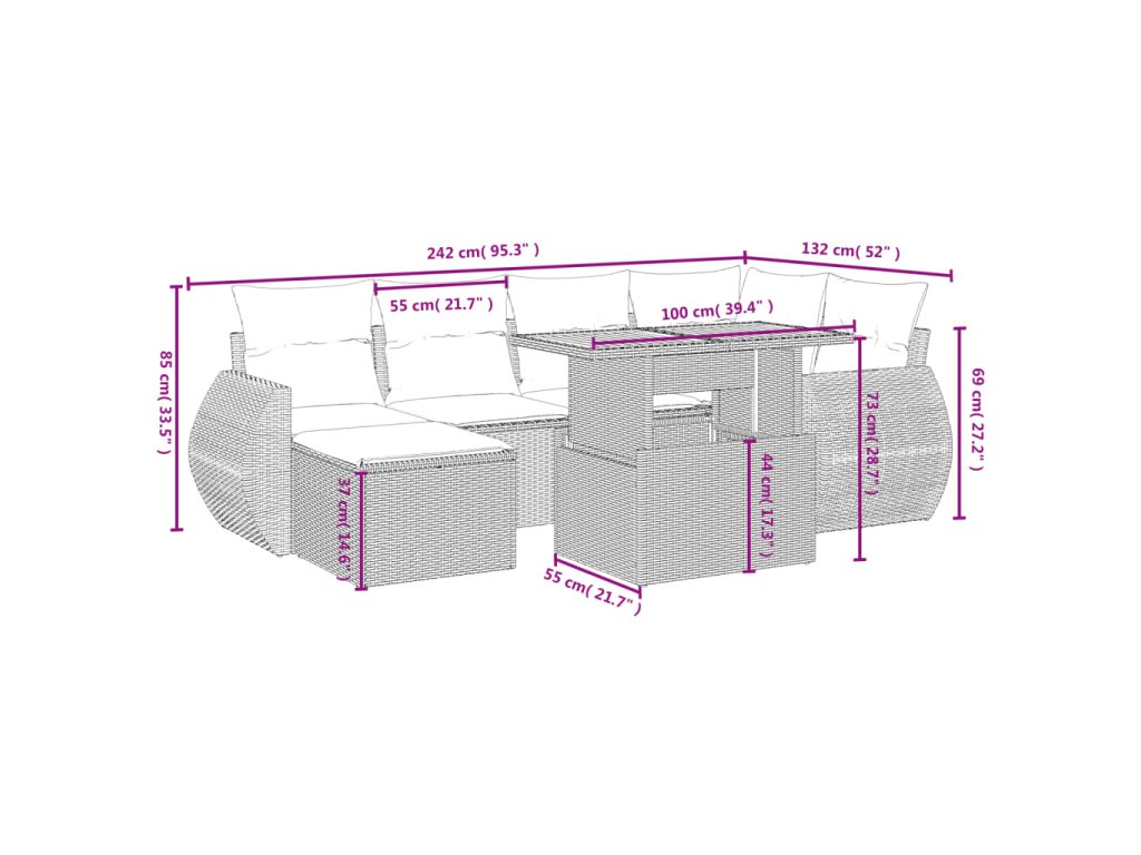 Tato zahradní sedací souprava je dokonalým doplňkem vaší zahrady, terasy nebo dvorku a poskytne vám pohodlné a příjemné místo, kde si můžete povídat s rodinou a přáteli nebo jen tak odpočívat a užívat si pobyt venku.