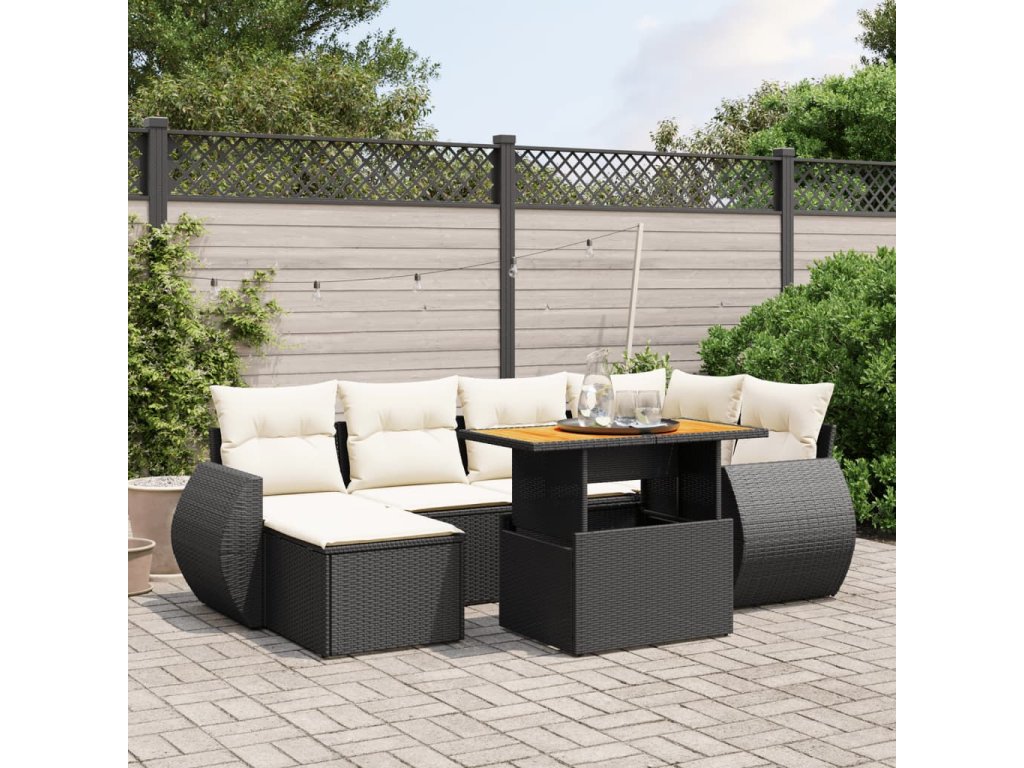7dílná zahradní sedací souprava s poduškami černá polyratan 3275814