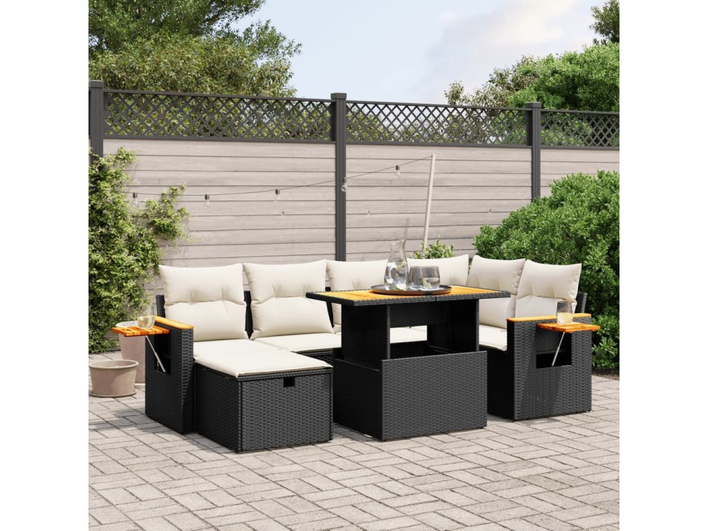 7dílná zahradní sedací souprava s poduškami černá polyratan 3276143