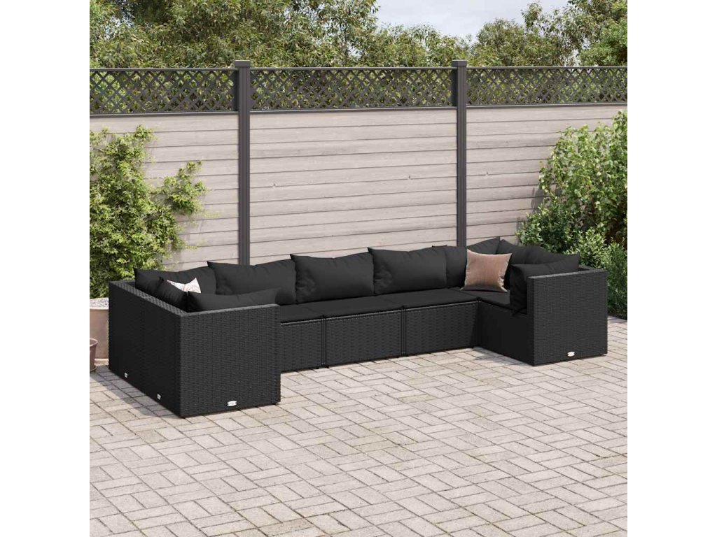 7dílná zahradní sedací souprava s poduškami černá polyratan 3308259