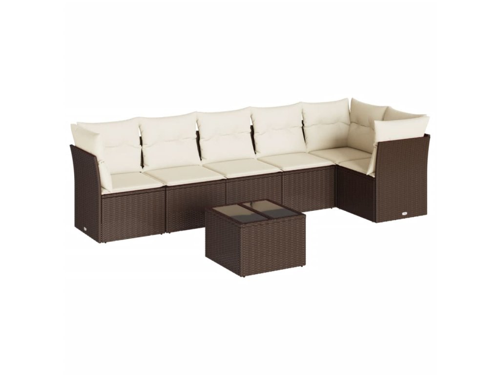 7dílná zahradní sedací souprava s poduškami hnědá polyratan 3217673