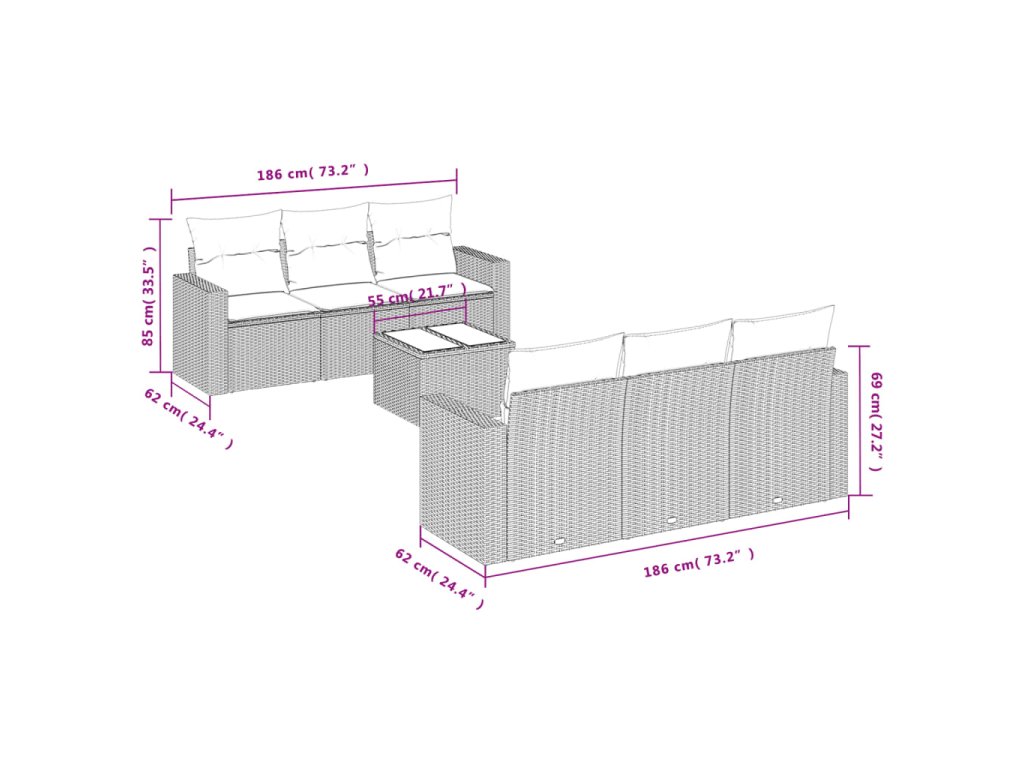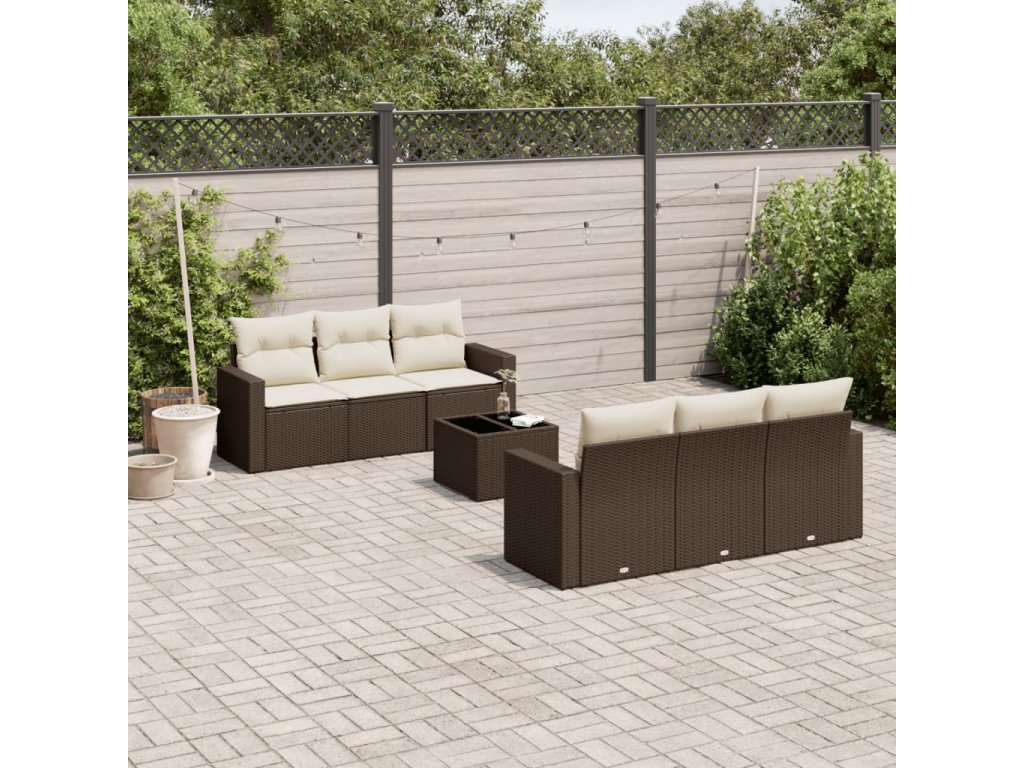 7dílná zahradní sedací souprava s poduškami hnědá polyratan 3218703