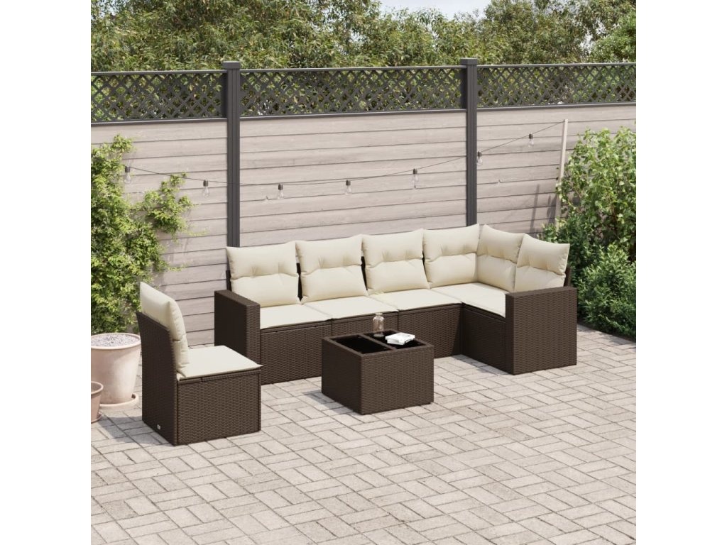 7dílná zahradní sedací souprava s poduškami hnědá polyratan 3219033