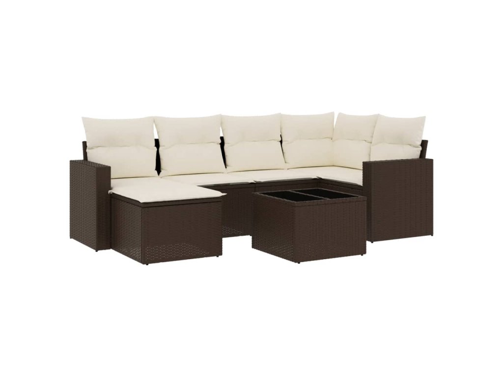 7dílná zahradní sedací souprava s poduškami hnědá polyratan 3219263