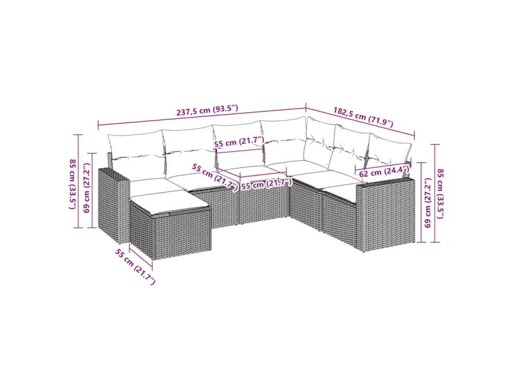 7dílná zahradní sedací souprava s poduškami hnědá polyratan 3219293