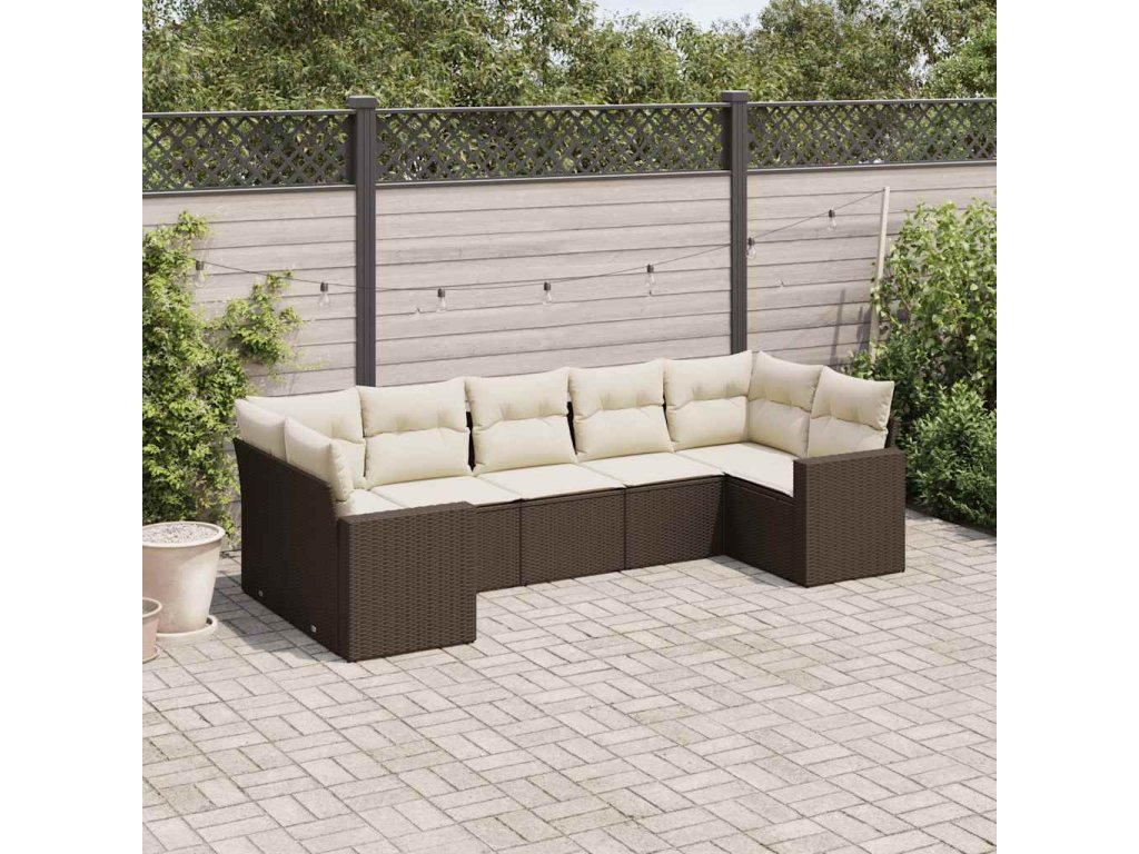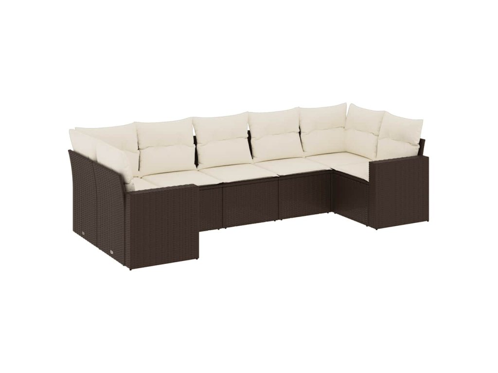 7dílná zahradní sedací souprava s poduškami hnědá polyratan 3219383