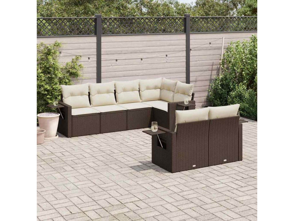 7dílná zahradní sedací souprava s poduškami hnědá polyratan 3220412