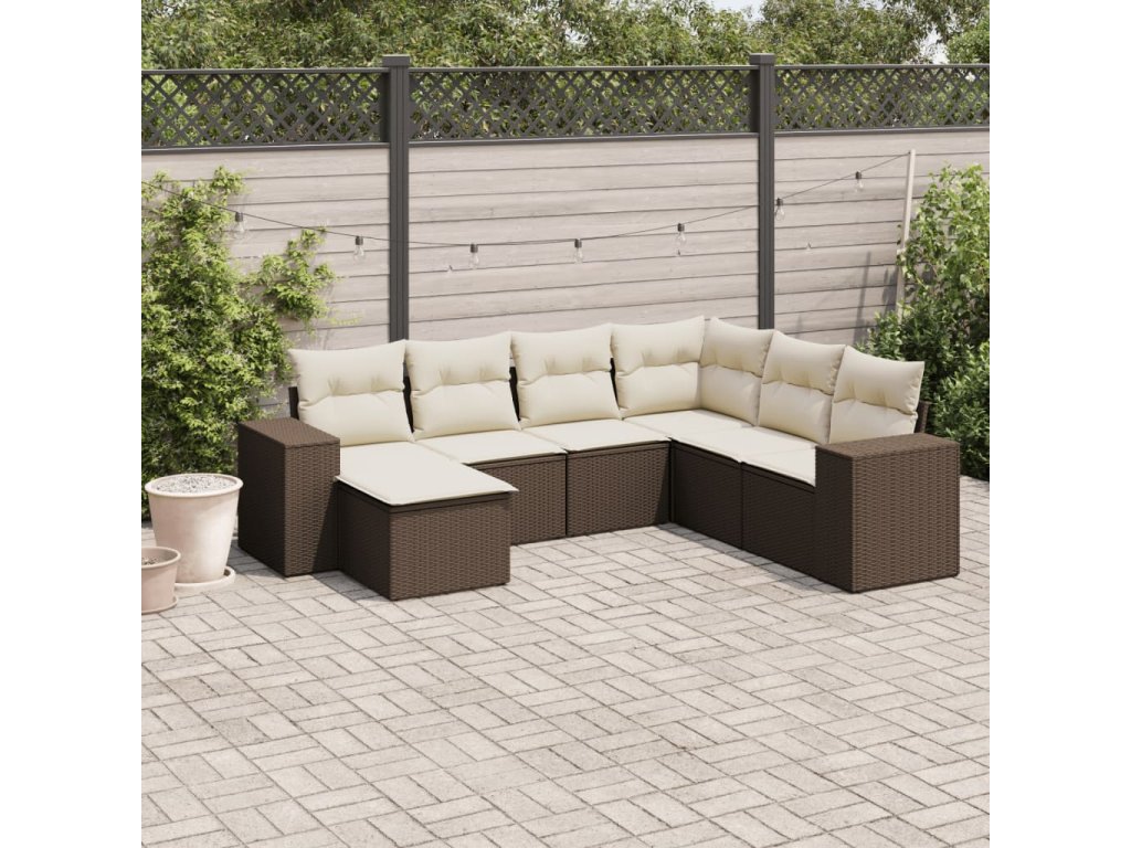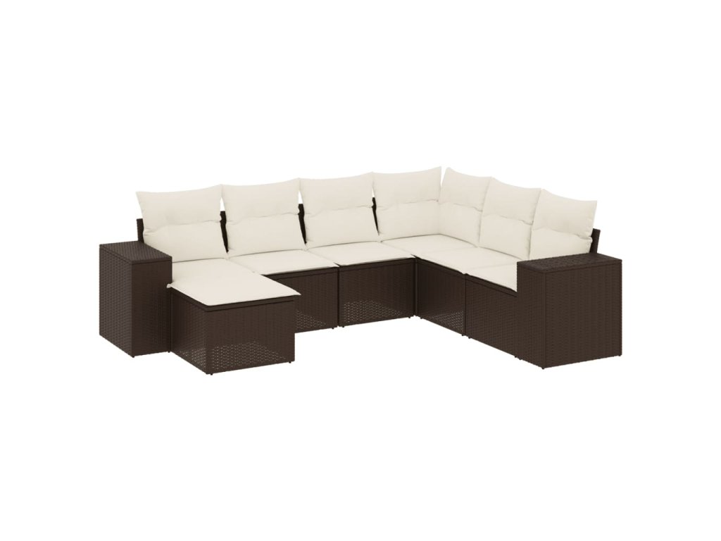 7dílná zahradní sedací souprava s poduškami hnědá polyratan 3222902
