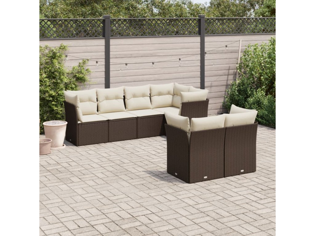 7dílná zahradní sedací souprava s poduškami hnědá polyratan 3249742