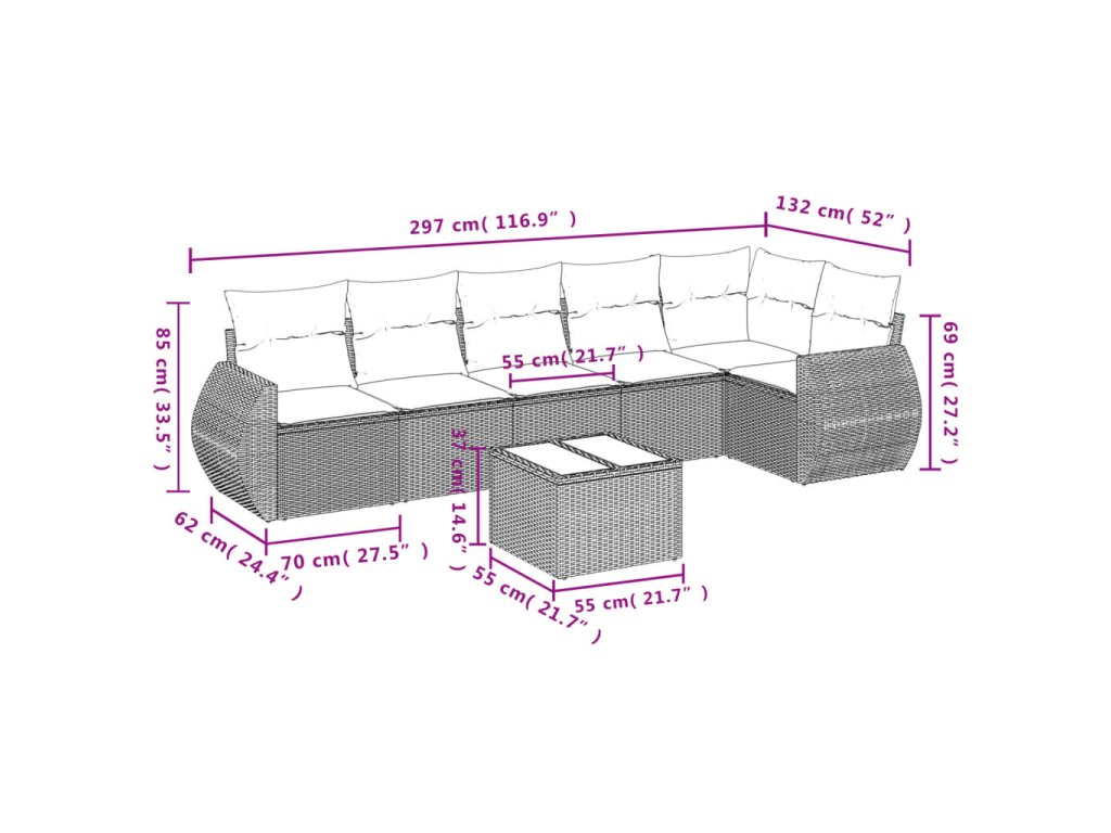 Tato zahradní sedací souprava je dokonalým doplňkem vaší zahrady, terasy nebo dvorku a poskytne vám pohodlné a příjemné místo, kde si můžete povídat s rodinou a přáteli nebo jen tak odpočívat a užívat si pobyt venku.