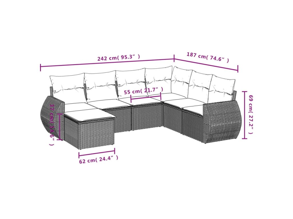 Tato zahradní sedací souprava je dokonalým doplňkem vaší zahrady, terasy nebo dvorku a poskytne vám pohodlné a příjemné místo, kde si můžete povídat s rodinou a přáteli nebo jen tak odpočívat a užívat si pobyt venku.