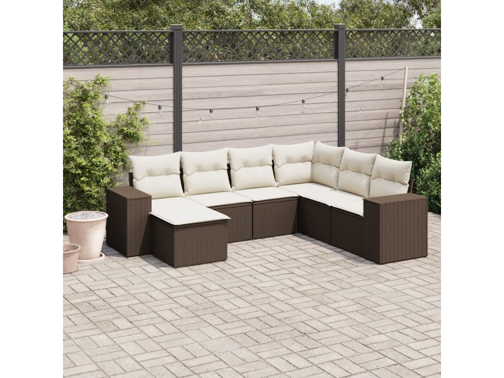 7dílná zahradní sedací souprava s poduškami hnědá polyratan 3254040