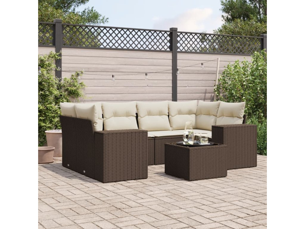 7dílná zahradní sedací souprava s poduškami hnědá polyratan 3254660