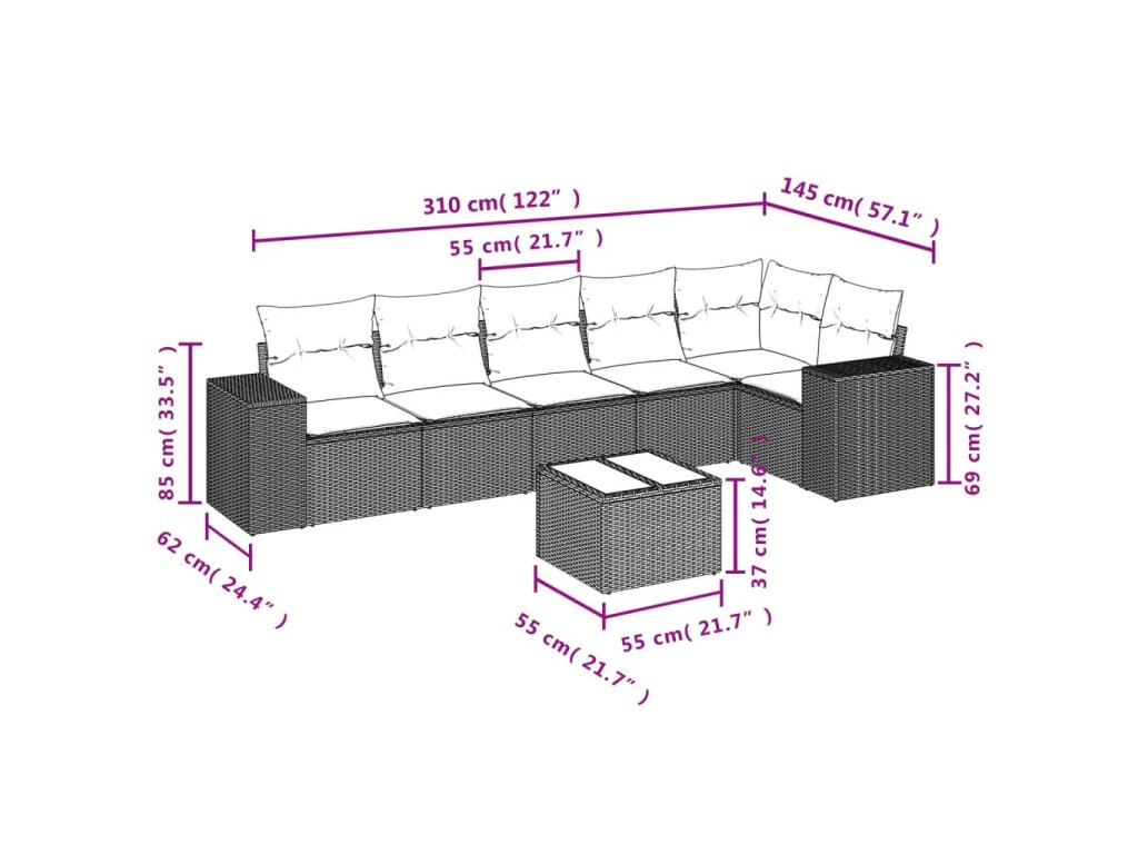 Tato zahradní sedací souprava je dokonalým doplňkem vaší zahrady, terasy nebo dvorku a poskytne vám pohodlné a příjemné místo, kde si můžete povídat s rodinou a přáteli nebo jen tak odpočívat a užívat si pobyt venku.
