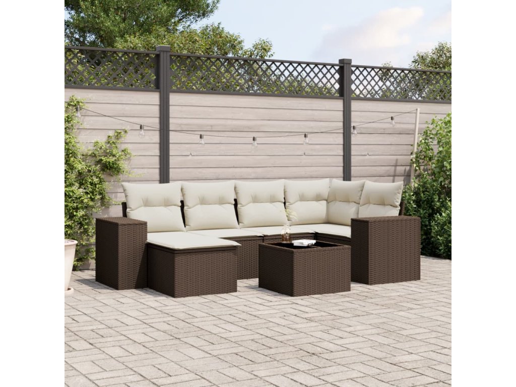 7dílná zahradní sedací souprava s poduškami hnědá polyratan 3255210