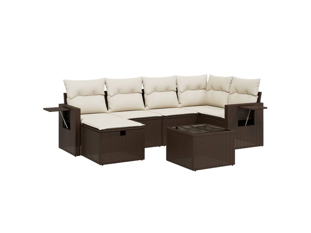 7dílná zahradní sedací souprava s poduškami hnědá polyratan 3263809