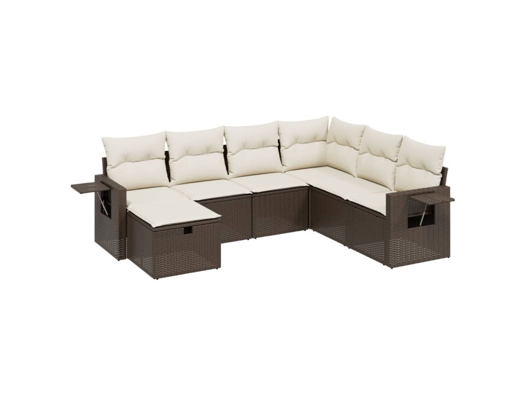 7dílná zahradní sedací souprava s poduškami hnědá polyratan 3263839