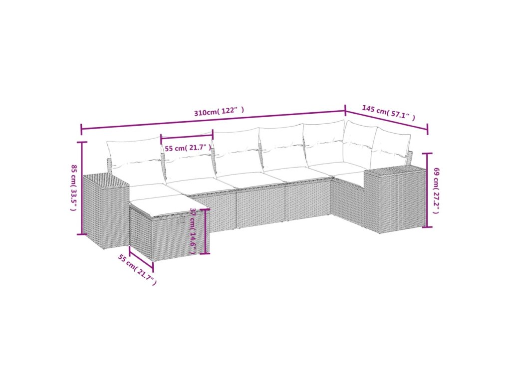 7dílná zahradní sedací souprava s poduškami hnědá polyratan 3264459