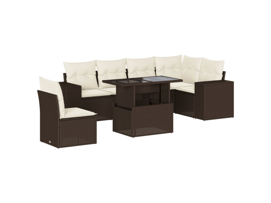 7dílná zahradní sedací souprava s poduškami hnědá polyratan 3269203