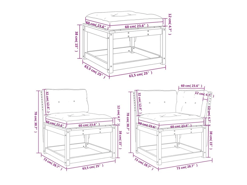 7dílná zahradní sedací souprava s poduškami masivní borovice 3216935